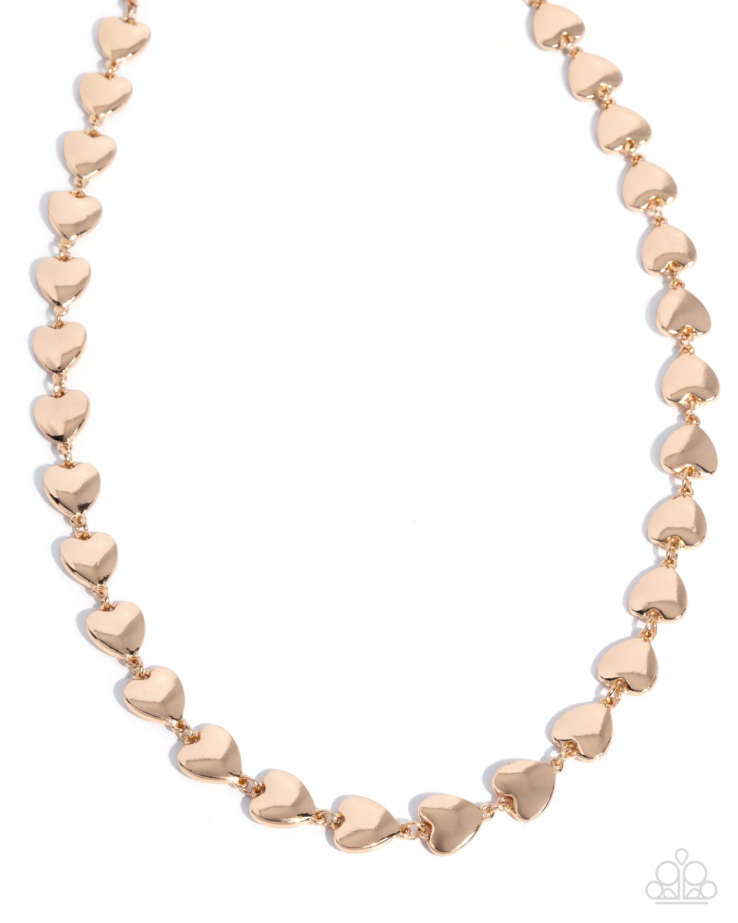 Etched in light-catching shimmer, a glistening collection of gold hearts interlocks below the collar for a radiantly romantic look. Features an adjustable clasp closure.