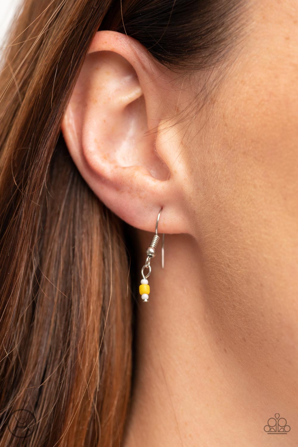 A dainty strand of multicolored seed beads is dotted with yellow and white beaded floral frames, creating a flirtatious floral look around the neck. Features an adjustable clasp closure.