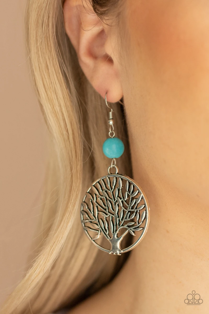 A shimmery silver tree frame swings from the bottom of a refreshing white stone, creating an earthy lure. Earring attaches to a standard fishhook fitting.