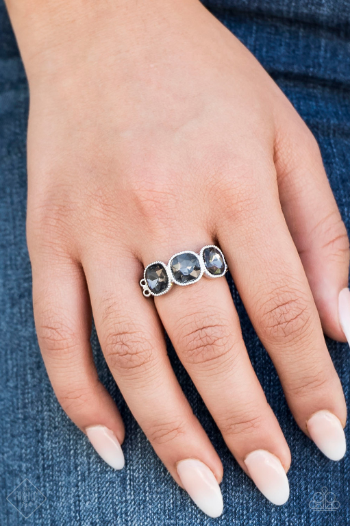 Glassy black rhinestones connect across the finger, creating a timeless band. Features a dainty stretchy band for a flexible fit.